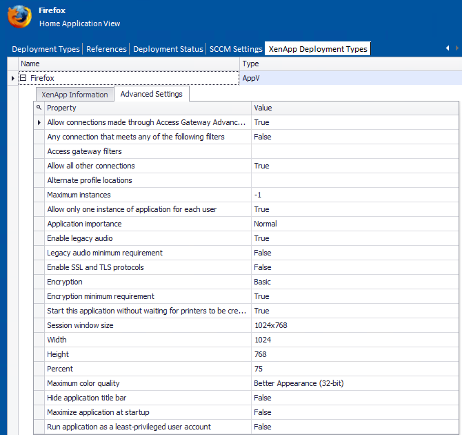 3. Click the XenApp Deployment Data tab and open the Advanced Settings subtab.