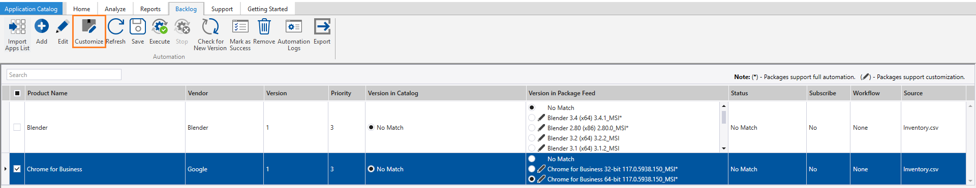 To customize a package, for example Google Chrome, perform the following steps.