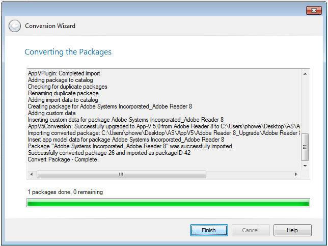- Click Finish . The converted App-V 5.0 package is now listed in the tree, next to the 4.x package.